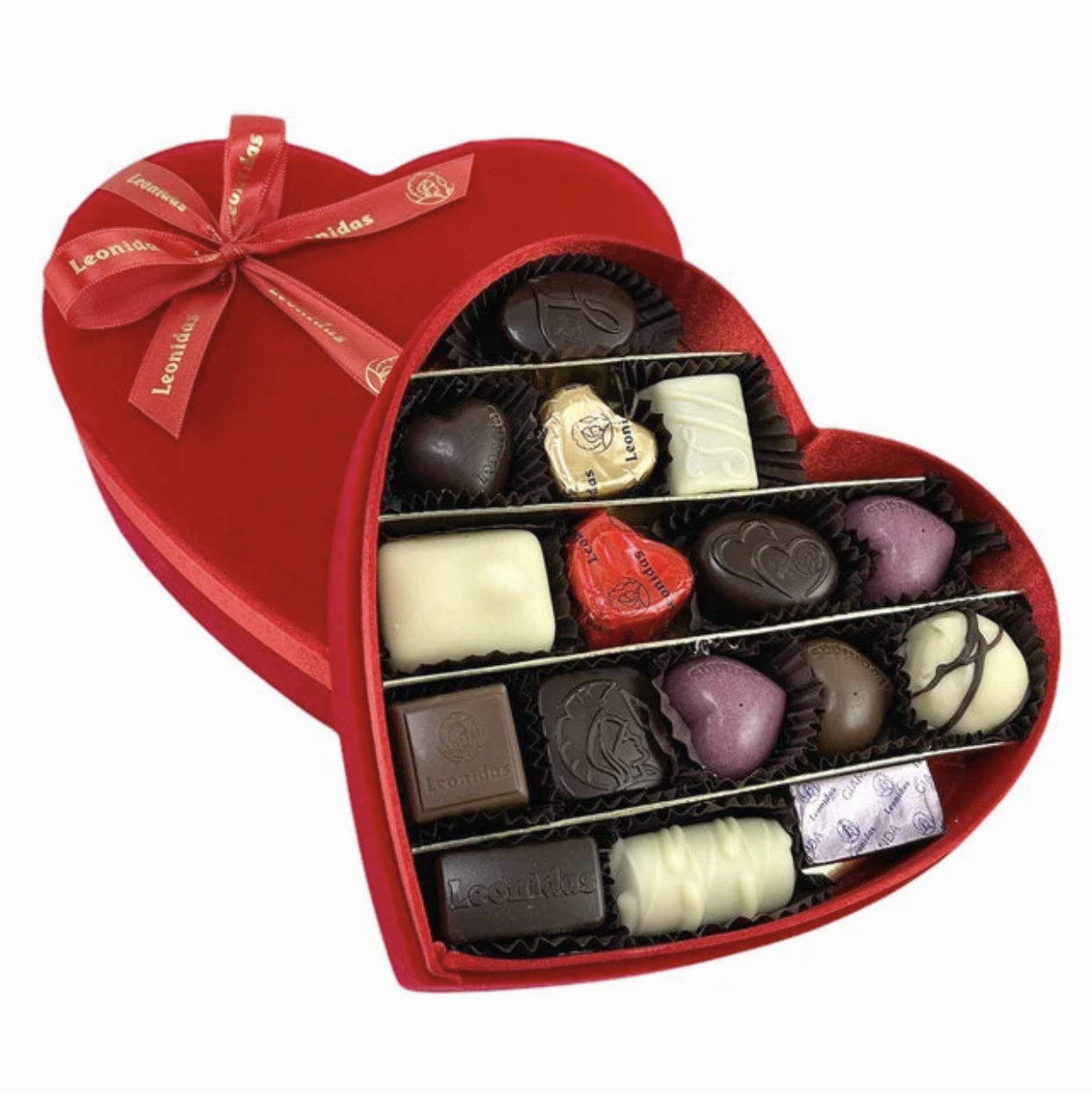 Boite en velours garnies avec de délicieuses pralines Leonidas 200 gr