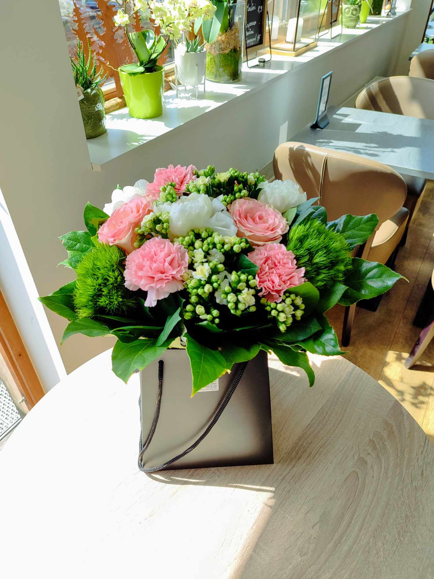 • Joli vase transparent adaptĂ© Ă  la forme du bouquet choisi qui apportera une touche finale et pratique Ă  votre cadeau