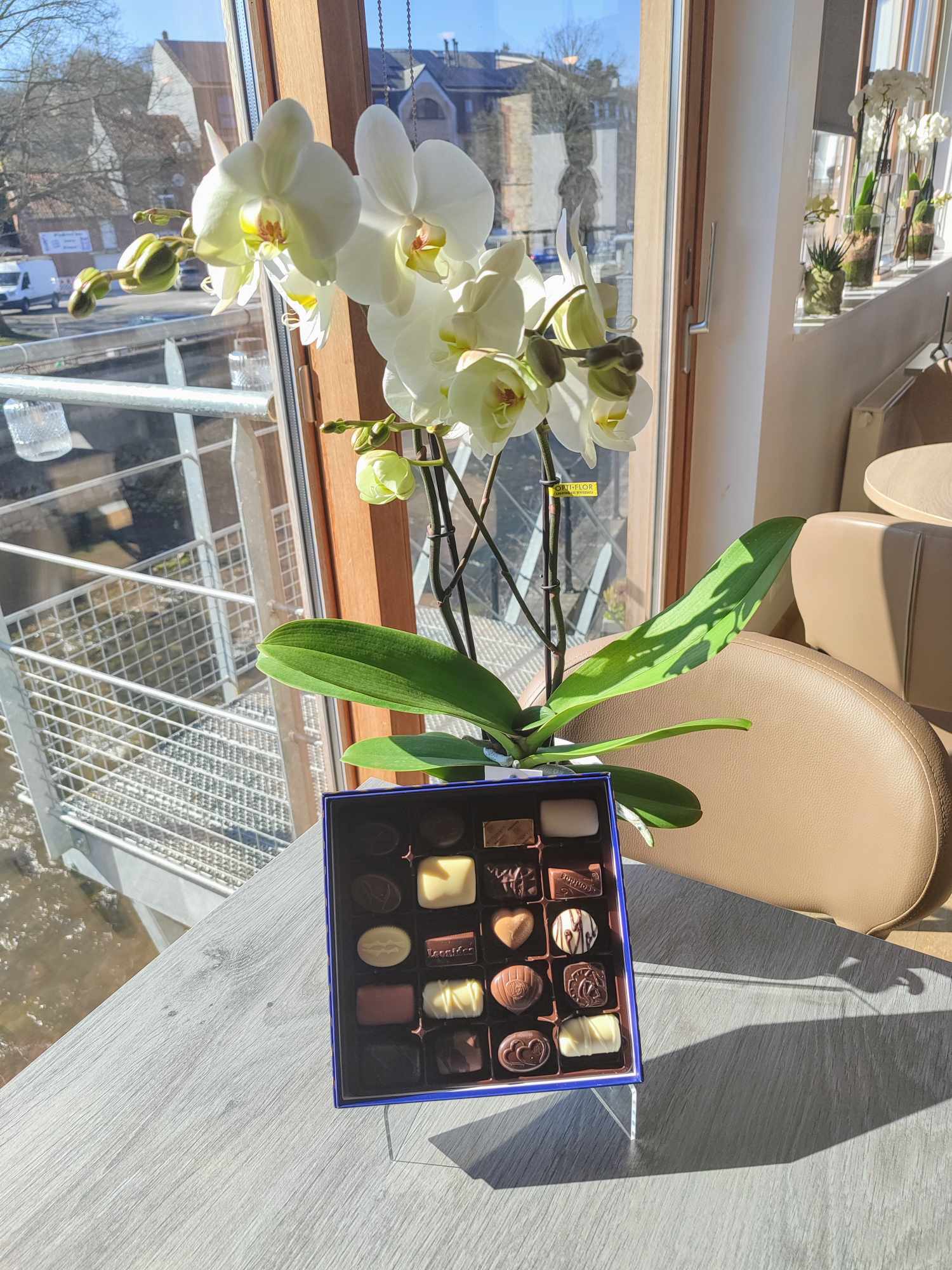 Formule Amarante – 1 Orchidée + 1 coffret de pralines Leonidas