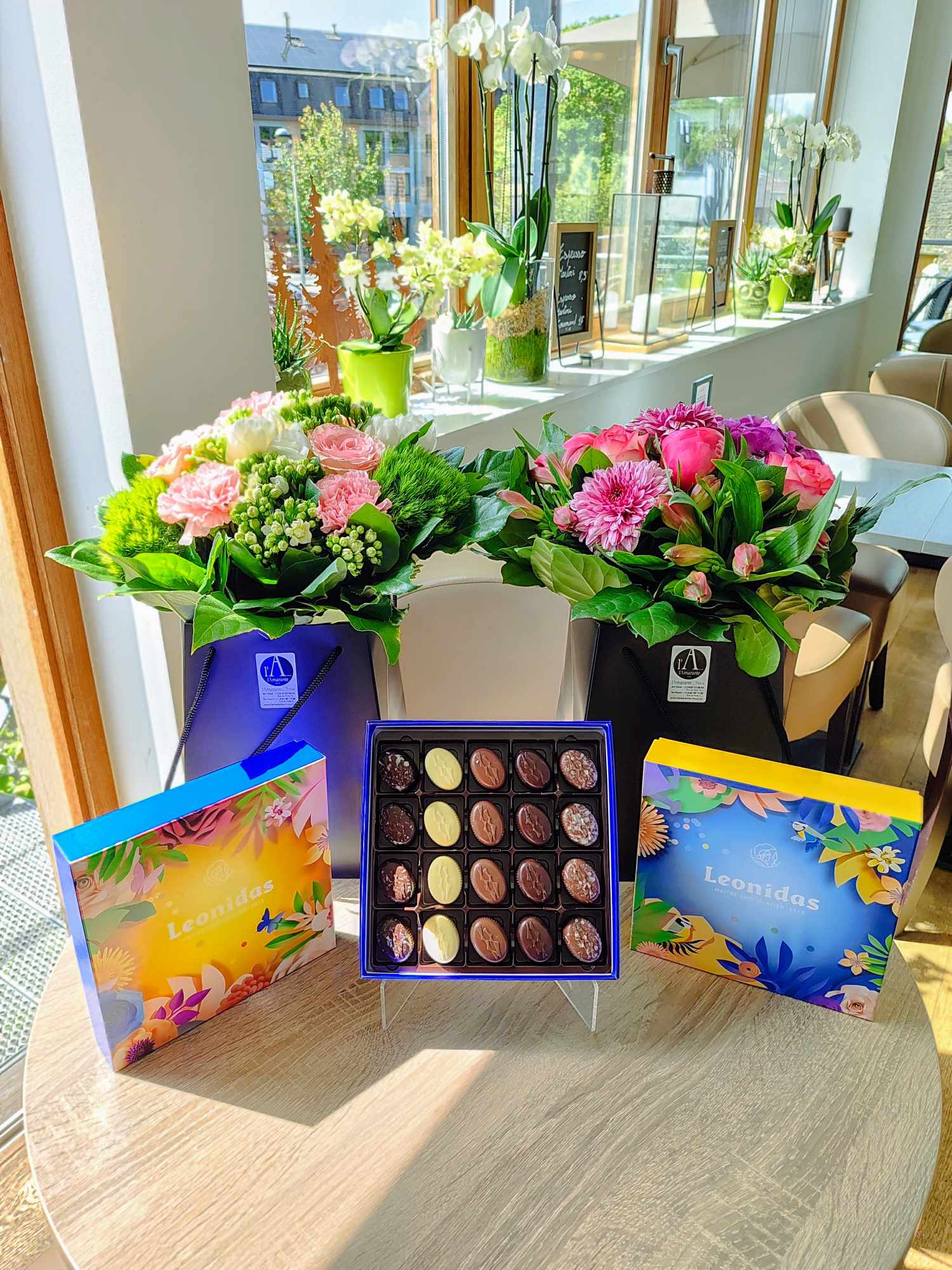 Formule Amarante – 1 Bouquet + 1 coffret de pralines Leonidas